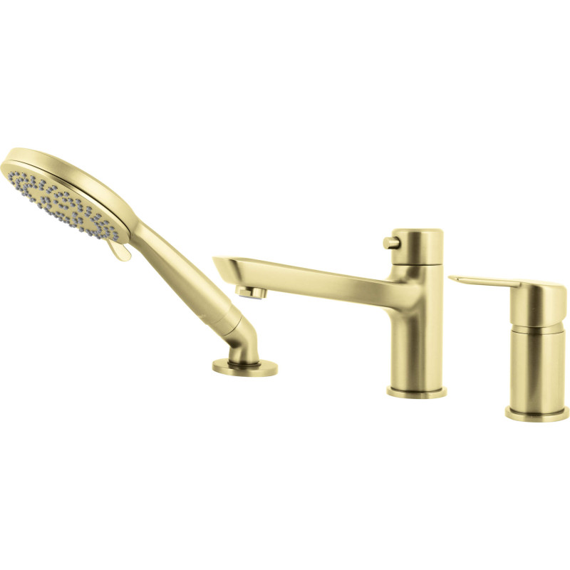 Odkryj niezwykłe połączenie luksusu i funkcjonalności z naszą elegancką baterią wannową 3-otworową złotą, która przenosi codzienną kąpiel na wyższy poziom komfortu i stylu. Ta wyjątkowa bateria, wykonana z najwyższej jakości mosiądzu i wykończona zachwycającym złotem szczotkowanym, doda Twojej łazience niepowtarzalnego blasku i elegancji.