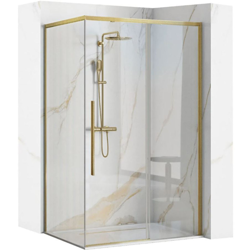 Dzięki swojej złocistej ramie o wykończeniu brush gold, kabina zyskuje niepowtarzalny, ekskluzywny wygląd. Idealnie pasuje do każdej łazienki, dodając jej charakteru i prestiżu. Perfekcyjne dopasowanie do wnętrz urządzonych w różnych stylach sprawia, że jest to produkt uniwersalny, a jednocześnie niezwykle wyszukany.