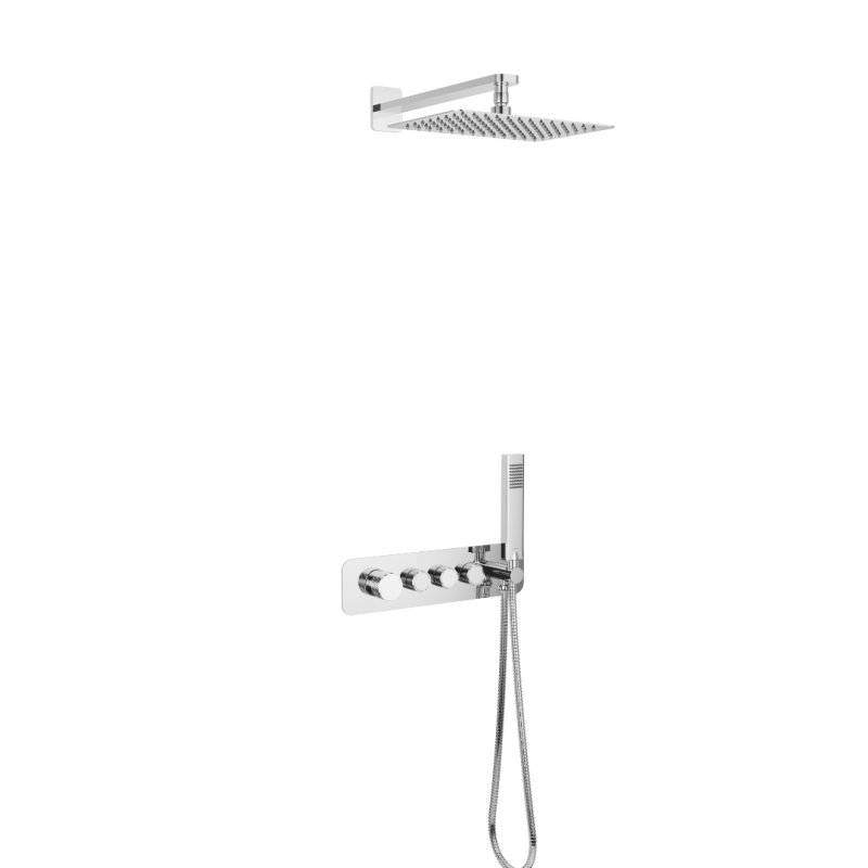 • Krotos zestaw prysznicowo-wannowy podtynkowy z deszczownicą 20x30cm 3 funkcyjny, chrom
