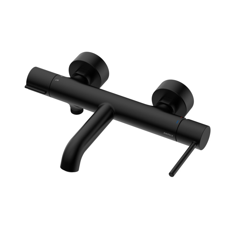 5907333340344ABUL211311 635907333340344ABUL211311ABUL211311Bateria wannowa ścienna z przełącznikiem natrysku Avapax ULTIMATE – Bateria wannowa ścienna z przełącznikiem natrysku (symbol produktu: ABUL211311), czarny mat. Płynna regulacja strumienia, wytrzymały korpus i szybkie przełączanie na prysznic podnoszą komfort i oszczędność w łazience. Avapax ULTIMATE PRODUKTY\Przegląd kolekcji\Ultimate PRODUKTY\Łazienka\Baterie\Baterie wannowe PRODUKTY Bateria: Kolor: czarny Wykończenie: mat Rodzaj baterii: jednouchwytowa | mieszaczowa Sposób montażu: ścienny Klasa przepływu [l/min]: B/B Materiał baterii: mosiądz Grupa akustyczna [dB]: II Rodzaj wylewki: stała Zasięg wylewki wannowej [mm]: 199 Rozmiar głowicy ceramicznej baterii [mm]: 30 Typ przełącznika funkcji: mechaniczny