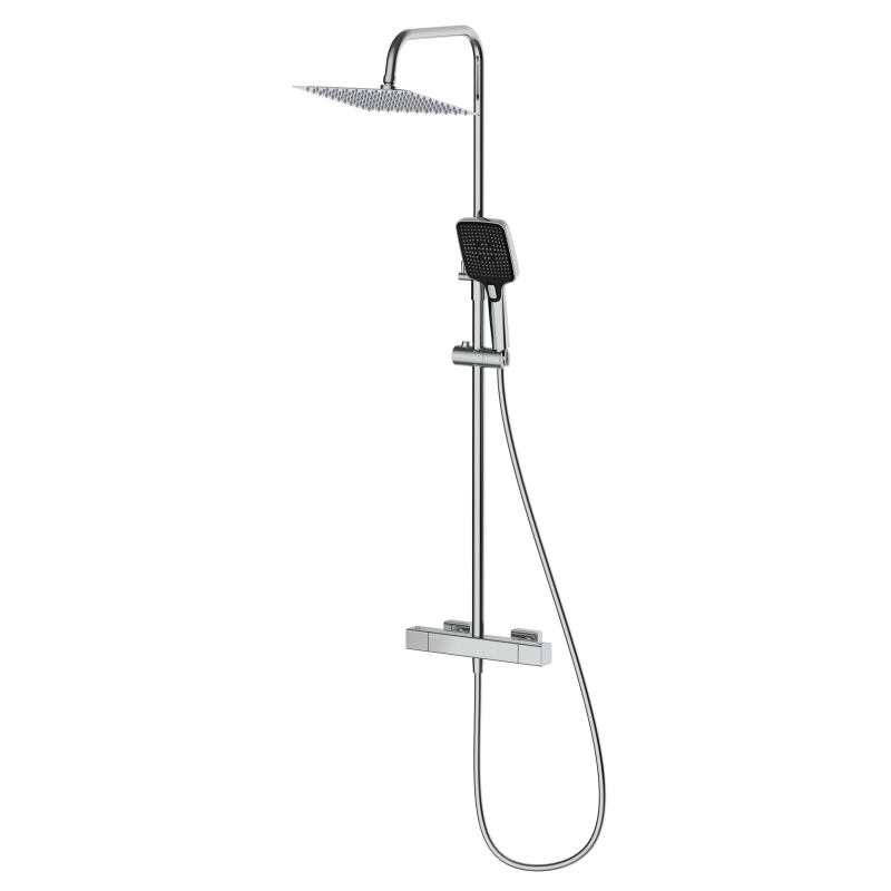 AVAPAX THERMO ADTH6211T2 to kompletny zestaw natryskowy, w którym techniczna niezawodność spotyka się z elegancją formy. Błyszczący Chrom Połysk, geometryczna i proporcjonalna linia (kwadratowa deszczownica 250×250 mm, prostokątna rączka), smukły drążek oraz precyzyjna bateria termostatyczna z blokadą 38°C tworzą spójny, nowoczesny zestaw do strefy prysznica. Styl: nowoczesny, minimalistyczny i klasyczny premium, powierzchnia: błyszcząca, forma: geometryczna i smukła. Materiały dobrane pod kątem trwałości – mosiężny korpus baterii i stalowy drążek – zapewniają długowieczność oraz łatwe utrzymanie czystości, a dwa tryby natrysku gwarantują codzienny komfort.