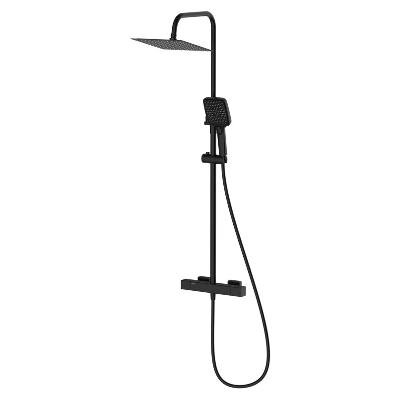 AVAPAX THERMO – Deszczownica z baterią prysznicową termostatyczną dwufunkcyjną, Czarny Mat (ADTH6213T2)