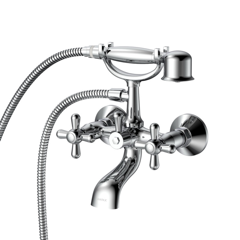 Bateria wannowa ścienna dwuuchwytowa z zestawem natryskowym (kod: ABZA211121) – kolekcja ZAHARRA marki AVAPAX.