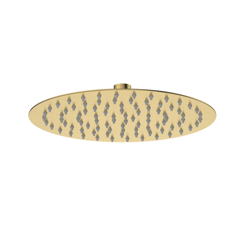 Najważniejsze parametry: materiał – stal nierdzewna 304, kolor/wykończenie – złoty szczotkowany Brushed Gold, średnica – 250 mm, wysokość – ok. 49 mm, gwint – G1/2, funkcje – 1, klasa przepływu – C, kształt – okrągły, gwarancja – 2 lata.