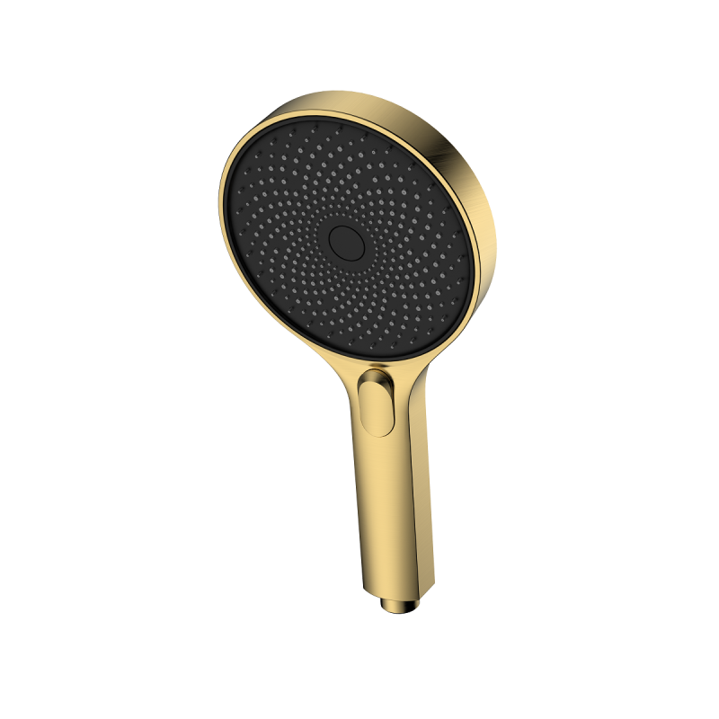 Słuchawka prysznicowa 3F - trzyfunkcyjna (kod: ASRO131211) – kolekcja RONDE marki AVAPAX. Okrągła, proporcjonalna forma i szczotkowane złoto Brushed Gold nadają jej elegancji klasy premium, a solidna konstrukcja zapewnia pewność na lata. Trzy tryby strumienia (deszczowy, mieszany, hydromasaż) pozwalają dopasować natrysk od relaksu po energię, zachowując oszczędność wody i wysoki komfort użytkowania.