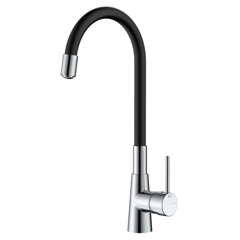 Bateria kuchenna stojąca z elastyczną wylewką (kod: ABON7217F1) – kolekcja ONCLO marki AVAPAX. Model łączy prostotę formy z ergonomią codziennej pracy w kuchni: smukły, cylindryczny korpus w chromie połysk oraz elastyczna wylewka w kolorze czarnym mat tworzą wyraz nowoczesnego, minimalistycznego charakteru z lekką nutą industrialną. Materiał: mosiądz – trwały, odporny na korozję, gwarantujący długowieczność. Kolor/wykończenie: chrom połysk / czarny mat. Forma: smukła i proporcjonalna, powierzchnia: błyszcząca na korpusie, matowa na wylewce. Wykonana z wysoką dbałością o precyzję i komfort użytkowania – głowica ceramiczna 35 mm ułatwia dokładną regulację, a elastyczna wylewka zwiększa zasięg pracy przy zlewie.