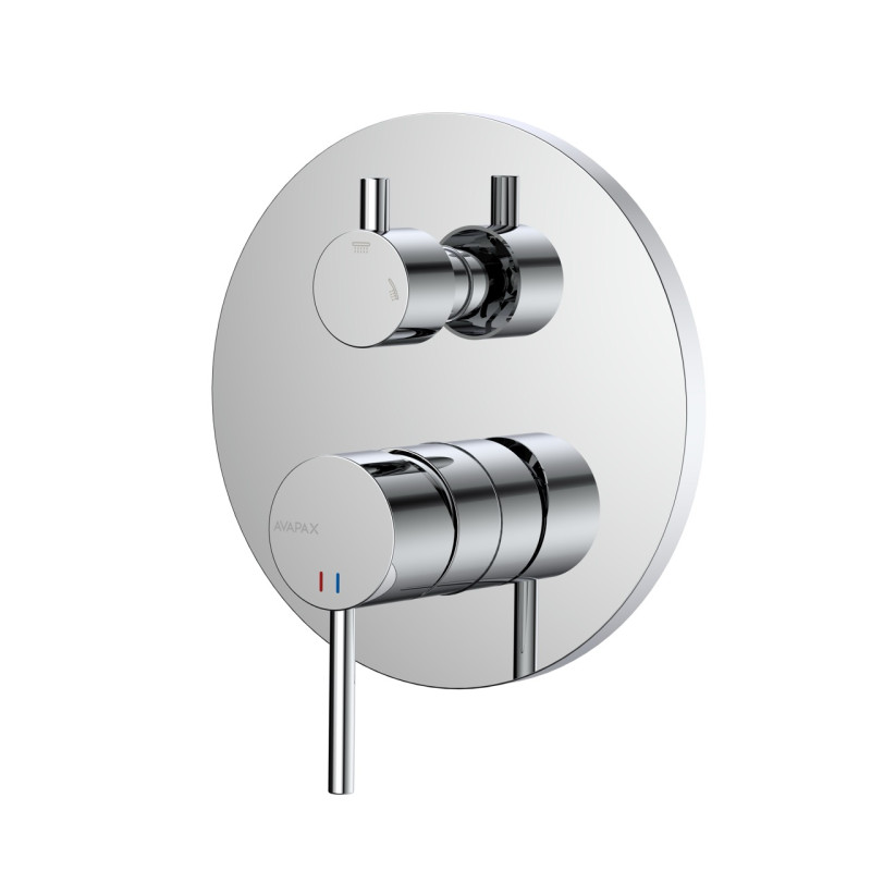 Bateria prysznicowo wannowa podtynkowa dwufunkcyjna marki AVAPAX przeznaczona jest do obsługi dwóch wyjść w strefie kąpieli – prysznica i wylewki wannowej – zapewniając komfort, higienę i niezawodność każdego dnia w łazienkach prywatnych, hotelowych i komercyjnych.