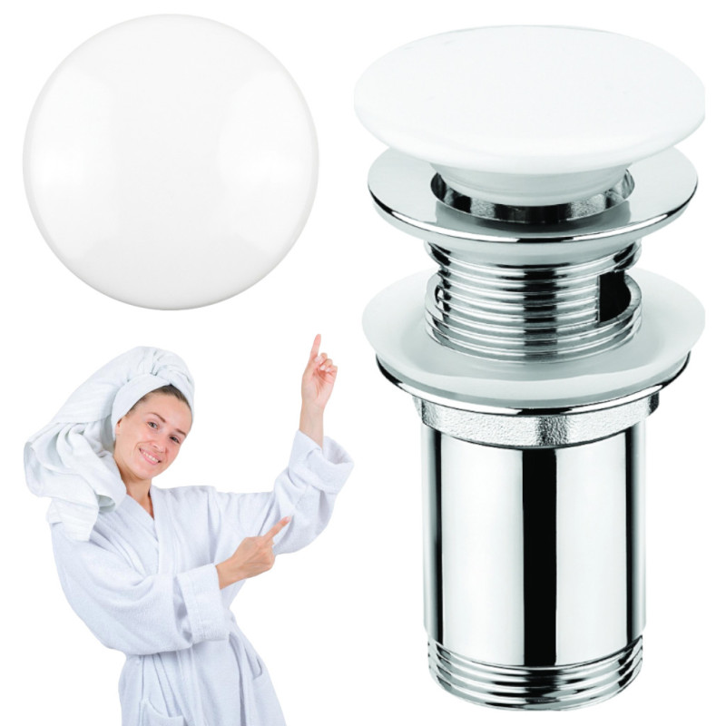 Dlaczego warto wybrać nasz biały Korek Click-Clack? Przede wszystkim dzięki jego uniwersalnemu zastosowaniu oraz atrakcyjnemu, okrągłemu kształtowi, który pasuje do większości standardowych odpływów 1 1/4''. Jest to rozwiązanie, które doskonale łączy w sobie estetykę z praktycznością, idealne do każdej łazienki.