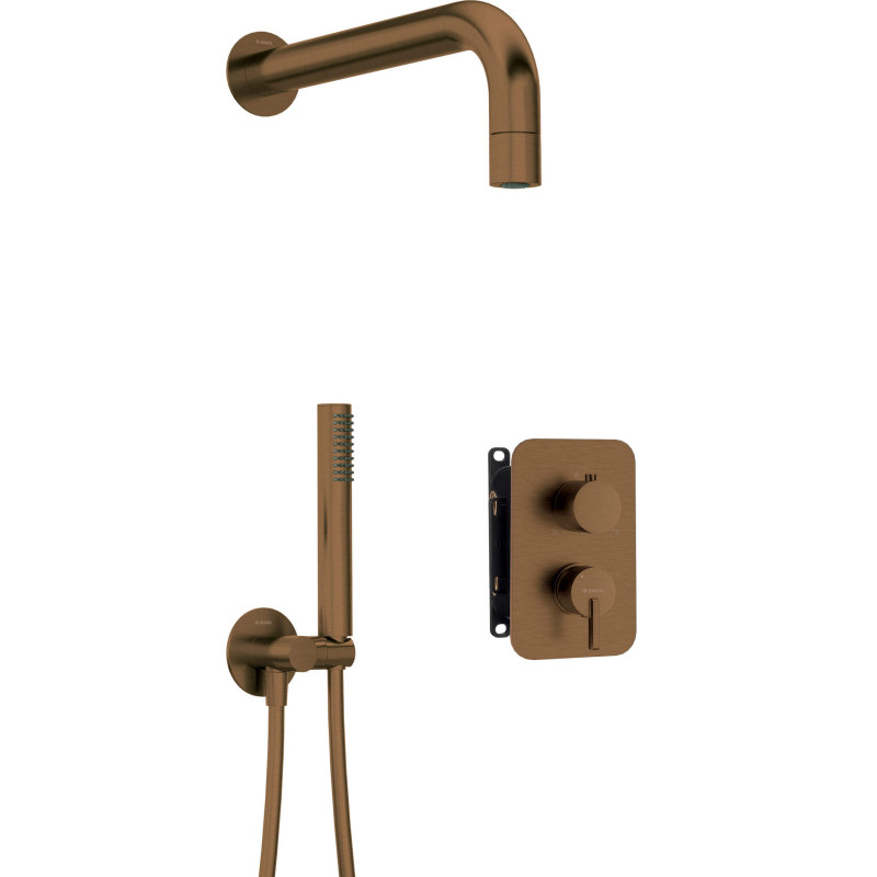 Montaż całego zestawu jest szybki i prosty dzięki podtynkowym elementom, a nowoczesny design sprawia, że idealnie komponuje się z każdym stylem łazienki. Estetyczne wykończenie brązu szczotkowanego dodaje wnętrzu elegancji oraz luksusowego charakteru.