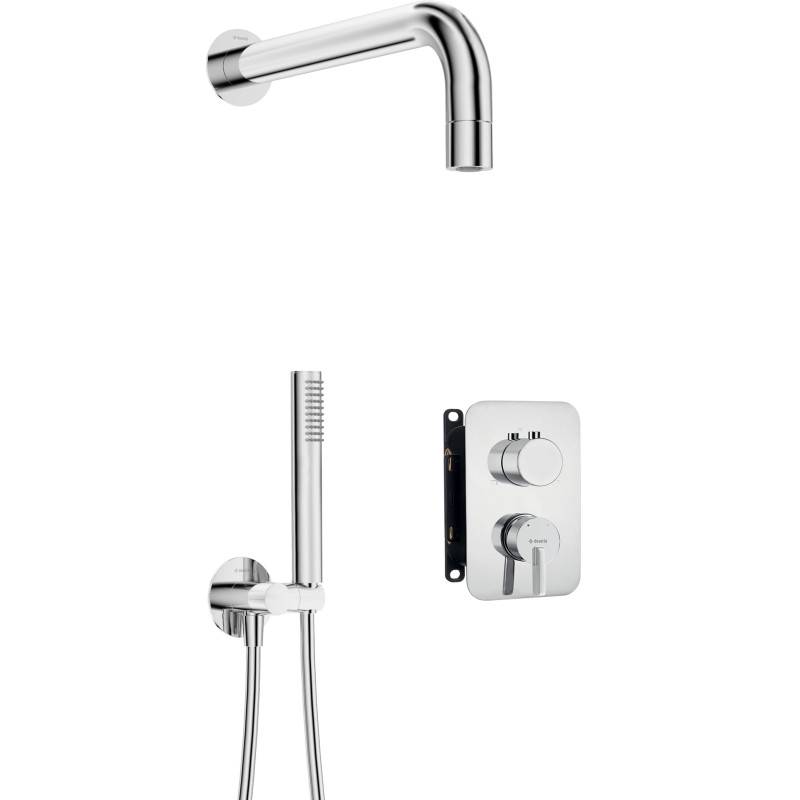 Kompleksowość zestawu wzbogacają elementy takie jak mosiężna głowica natryskowa z funkcją anti-calc, która minimalizuje powstawanie uciążliwego osadu wapiennego. Dzięki jednofunkcyjnemu strumieniowi deszczowemu, każda kąpiel stanie się chwilą relaksu i odprężenia. Dodatek słuchawki z funkcją cool-out podkreśla bezpieczeństwo użytkowania, chroniąc przed poparzeniem.