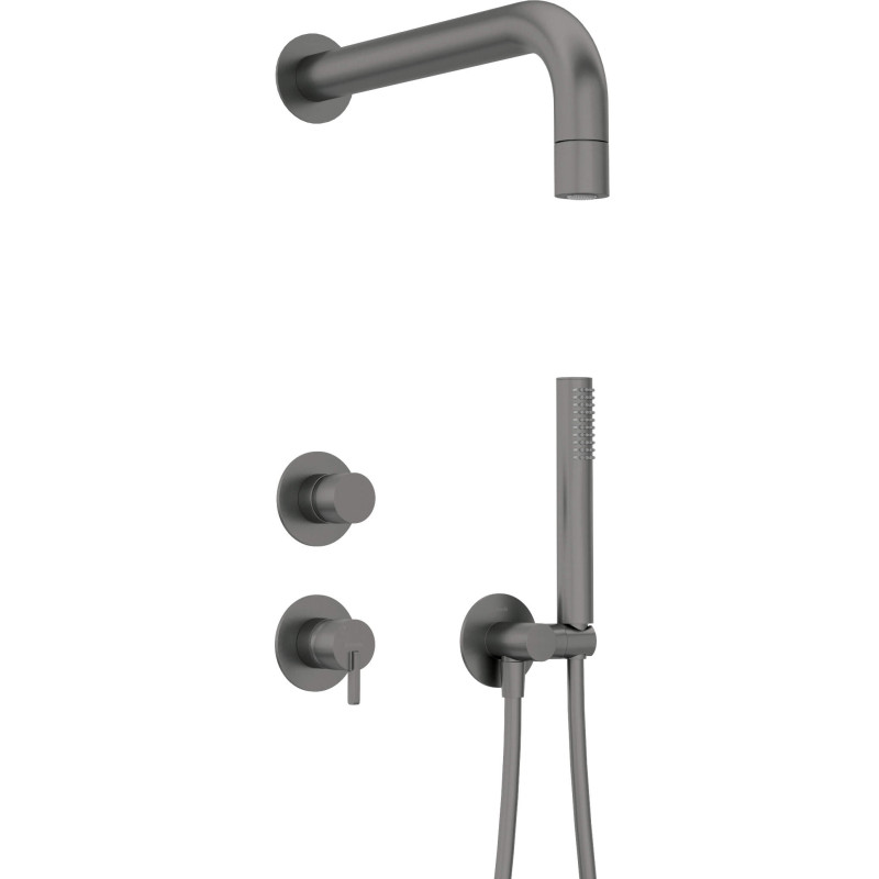 Każdy szczegół tego zestawu, od wykończenia słuchawek z okrągłym przyłączeniem kątowym w tytanowym kolorze po jego trwałość z materiałów takich jak mosiądz i stal nierdzewna, został zaprojektowany z myślą o trwałości i elegancji. 7-letnia gwarancja to nasz sposób na to, abyś mógł cieszyć się swoim zakupem bez obaw przez długie lata.