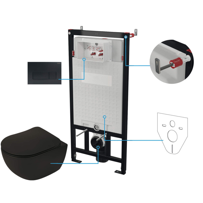 Przedstawiamy Elegancki Zestaw WC Podtynkowy 6 w 1 Nero z Cichym Spłukiwaniem – doskonały wybór dla tych, którzy cenią sobie zarówno estetykę, jak i funkcjonalność. Ten zestaw to harmonijne połączenie nowoczesnego designu i zaawansowanej technologii, co sprawia, że jest to idealne rozwiązanie dla każdej łazienki.