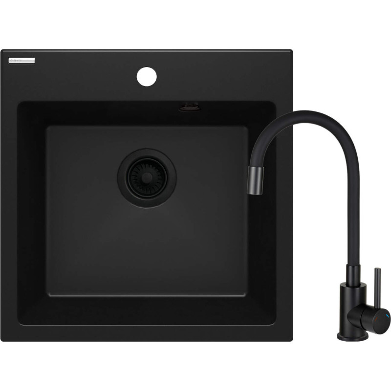 W skład zestawu wchodzi również wykończona w kolorze nero bateria jednouchwytowa z elastyczną wylewką, która pozwala na swobodę ruchu i ułatwia mycie naczyń. Wysoka klasa przepływu C zapewnia odpowiednie ciśnienie wody przy jednoczesnym oszczędzaniu jej zużycia. Dzięki honeycomb aeratorowi, strumień wody jest miękki i równomierny, co zwiększa komfort korzystania z produktu.