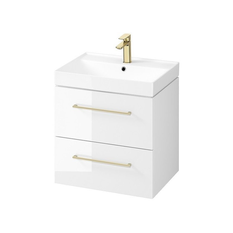 Centrum uwagi przyciąga biała umywalka idealnie komponująca się z całością. Jej delikatny połysk dodaje lekkości, a zarazem podkreśla luksusowy charakter produktu. Złote akcenty stanowią subtelne, a jednak wyraziste dopełnienie, które czyni tę szafkę wyjątkowym elementem każdej nowoczesnej łazienki.