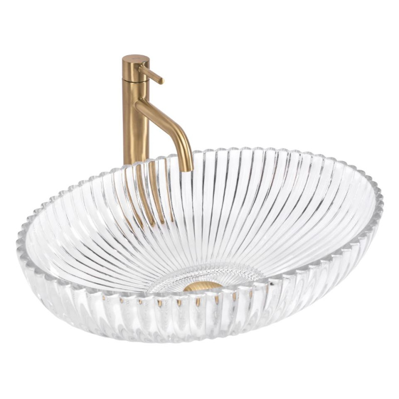 Ta umywalka nablatowa to symbol wyrafinowanego stylu. Jej transparentność nadaje każdej łazience lekkości, jednocześnie tworząc złudzenie przestronności. Ten model umywalki spełni oczekiwania nawet najbardziej wymagających klientów, stając się ozdobą, która zachwyci Twoich gości.