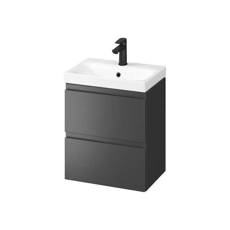 Zestaw łazienkowy MODUO 50 to nie tylko synonim stylu, ale przede wszystkim wygody. Posiada on przestronną szafkę wykończoną w antracytowym kolorze, co sprawia, że jest nie tylko estetyczna, ale również łatwa w utrzymaniu czystości. Zintegrowana umywalka to gwarancja komfortu i wygody w codziennym użytkowaniu.