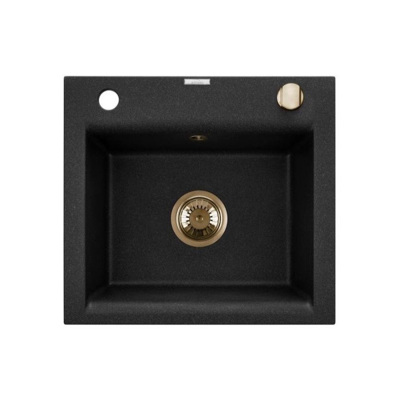 Zlewozmywak Tesalia wyróżnia się swoim głębokim czarnym kolorem, który doda elegancji każdej kuchni. Dzięki złotemu syfonowi stanowi ona doskonały element dekoracyjny, który z pewnością przyciągnie uwagę gości. Możliwość montażu jako zlewozmywak podblatowy lub na blatowy pozwala na dostosowanie go do indywidualnych potrzeb i designu kuchni.