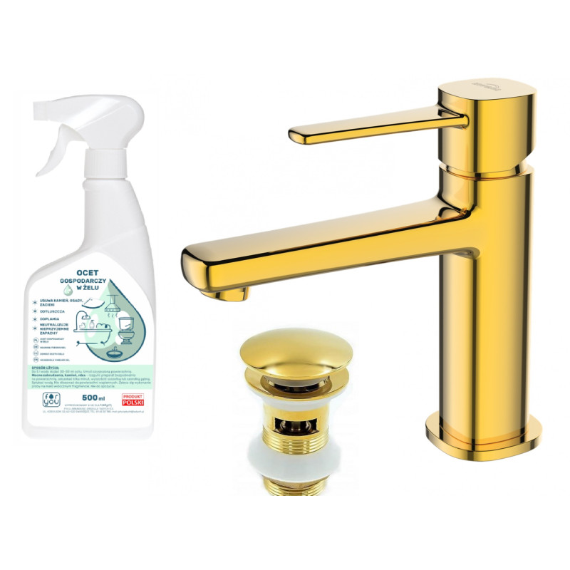 W zestawie znajdziesz również złoty korek click-clack, który uzupełnia baterię o dodatkowy akcent luksusu. Montaż jej jest dziecinnie prosty dzięki systemowi szybkiego montażu, dzięki czemu szybko i bezproblemowo odmłodzisz wygląd swojej łazienki. Dołączone wężyki przyłączeniowe o długości 40 cm zapewniają kompatybilność z większością instalacji.
