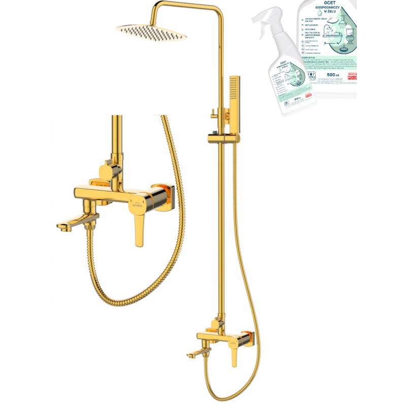 Z myślą o utrzymaniu czystości do zestawu dołączono preparat ocet gospodarczy w żelu. Doskonale sprawdza się przy czyszczeniu kabin prysznicowych, usuwa osady i kamień, dbając o lśniący wygląd Twojej łazienki bez użycia silnych chemikaliów.