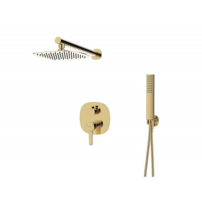 Niezależnie od tego, czy pragniesz odświeżyć swoją przestrzeń kąpielową czy stworzyć zupełnie nowy wystrój, zestaw Glamour złoty będzie idealnym rozwiązaniem. Dzięki nowoczesnej konstrukcji podtynkowej wszystkie elementy są elegancko ukryte, co dodaje wnętrzu minimalistycznego, ale jednocześnie luksusowego charakteru. Dwa tryby funkcjonalności baterii podtynkowej dają Ci swobodę wyboru idealnego rodzaju natrysku, dostosowanego do Twoich preferencji.