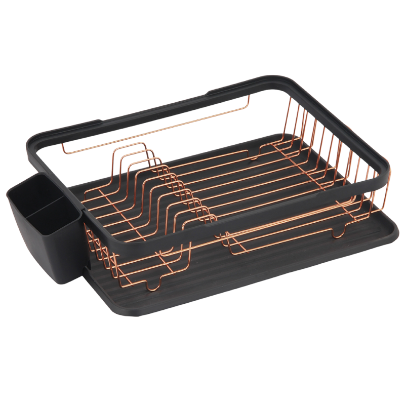 Nasza suszarka charakteryzuje się niebanalną kolorystyką: połączenie czarnego wykończenia ze szlachetnymi akcentami różowego złota tworzy elegancki i stylowy duet. Jest to idealny sposób, aby dodać Twojej przestrzeni kuchennej odrobinę luksusu bez potrzeby dużych zmian.