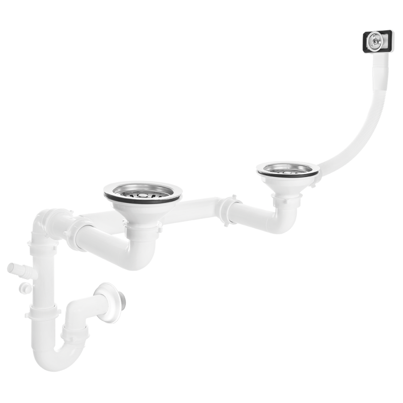 Syfon został wyposażony w odpływ 2x3,5″, co pozwala na szybkie i bezproblemowe odprowadzanie wody. Dodatkową zaletą jest przelew, który zapewnia bezpieczeństwo i chroni przed przelaniem się wody. To rozwiązanie szczególnie przydatne podczas intensywnych prac kuchennych, kiedy każda sekunda jest na wagę złota.