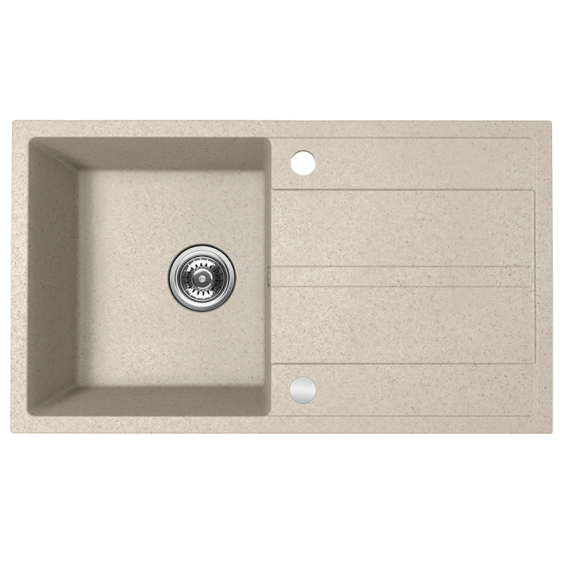 Wybierz Komfortowy Zlewozmywak Granitowy Viti 1K z Ociekaczem w kolorze beżowym i ciesz się nie tylko estetyką, ale i funkcjonalnością! Ten prostokątny zlewozmywak o szerokości całkowitej 440 mm i długości 760 mm doskonale wpasuje się w każdą kuchenną aranżację. Dzięki głębokości komory wynoszącej 160 mm, mycie dużych naczyń stanie się łatwiejsze niż kiedykolwiek.