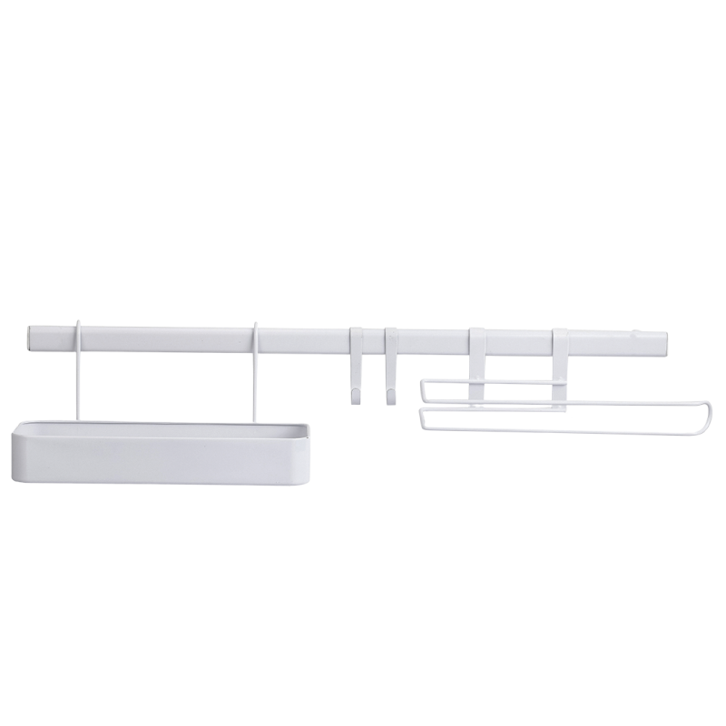 Nowoczesnym Zestawem Ściennym. Składający się z półki, relingu, uchwytu na ręcznik oraz dwóch haczyków, ten zestaw jest idealnym rozwiązaniem dla każdego, kto ceni sobie nie tylko funkcjonalność, ale i estetykę. Z białym wykończeniem i wysokiej jakości stalą malowaną proszkowo, ten zestaw dodaje klasycznej elegancji do każdego pomieszczenia.