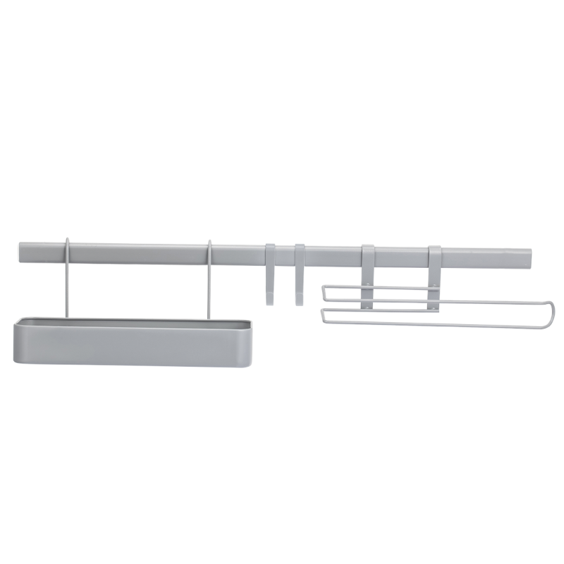 Przenieś styl i funkcjonalność do swojego domu dzięki Zestawowi Elegancka Półka z Relingiem i Haczykami w szarym wykończeniu. Ta wyjątkowa półka nie tylko doskonale się prezentuje, ale także oferuje praktyczne rozwiązania do przechowywania, które pomogą zorganizować Twoją przestrzeń.