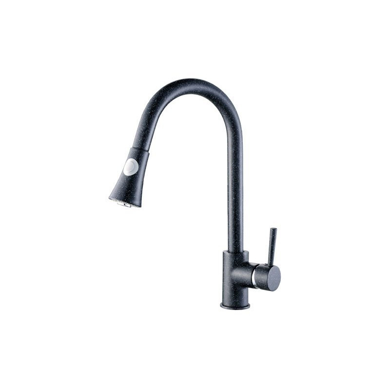 Odkryj nową definicję funkcjonalności i stylu z nowoczesną baterią stojącą DARU, wyróżniającą się swoim unikalnym wykończeniem w kolorze czarnego granitu. Perfekcyjnie łączy modne wzornictwo z praktycznymi rozwiązaniami, które dowolnie dopasują się do różnych stylów kuchennych.