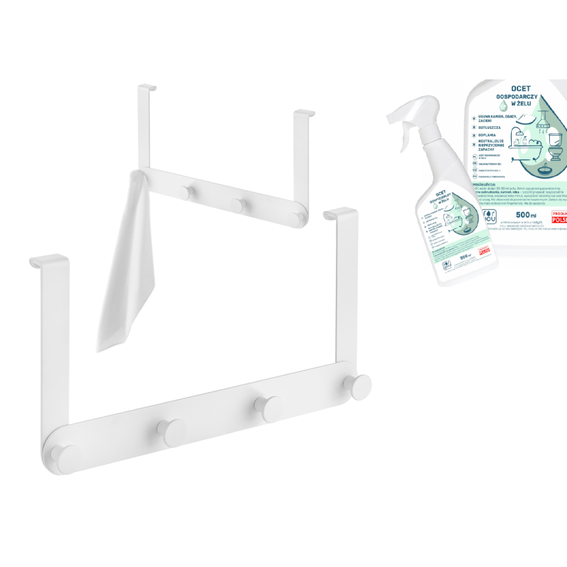 Wraz z wieszakiem otrzymasz ocet gospodarczy w żelu – doskonały, naturalny środek czyszczący, który pozwala na utrzymanie nieskazitelnej czystości w Twojej łazience. Jego unikalna formuła skutecznie usuwa osad mydlany, kamień oraz zacieki wodne bez potrzeby stosowania ostrych chemikaliów. Jest to rozwiązanie idealne dla tych, którzy cenią sobie ekologiczne i skuteczne produkty do sprzątania.
