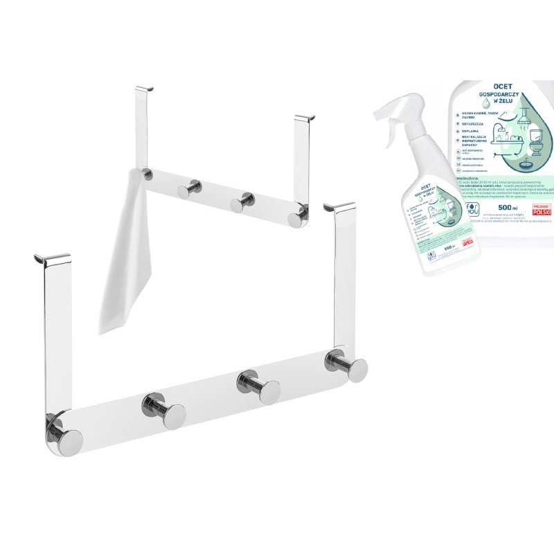 Dodatkową korzyścią zakupu tego wieszaka jest gratisowy preparat ocet gospodarczy w żelu. To naturalny środek czyszczący, idealny do usuwania osadów, kamienia oraz zacieków wodnych z powierzchni łazienkowych. Dzięki niemu zapewnisz swojej łazience nieskazitelną czystość bez konieczności sięgania po agresywne chemikalia.