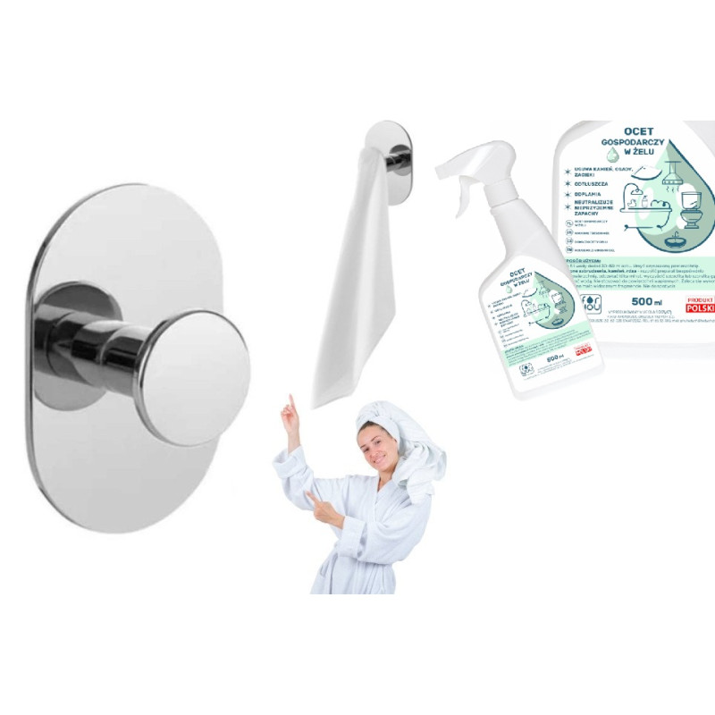 A to nie koniec korzyści! Wraz z wieszakiem otrzymasz gratis w postaci octu gospodarczego w żelu - naturalnego środka czyszczącego o wyjątkowej formule. Bez trudu rozpuści osady, kamień i mydlane zacieki, pozostawiając powierzchnie nieskazitelnie czystymi. To idealne rozwiązanie dla tych, którzy cenią sobie naturalność i dbają o ekologię.