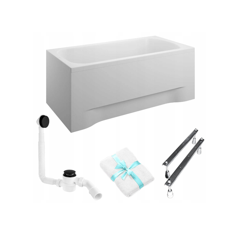 W zestawie znajduje się elegancka biała obudowa, która idealnie dopasowuje się do całej konstrukcji wanny. Gotowy komplet ułatwia montaż i nadaje profesjonalny wygląd każdej łazience. Ponadto, w zestawie znajdują się także stelaż, nogi i wszystkie elementy montażowe, co znacznie przyspiesza proces instalacji.