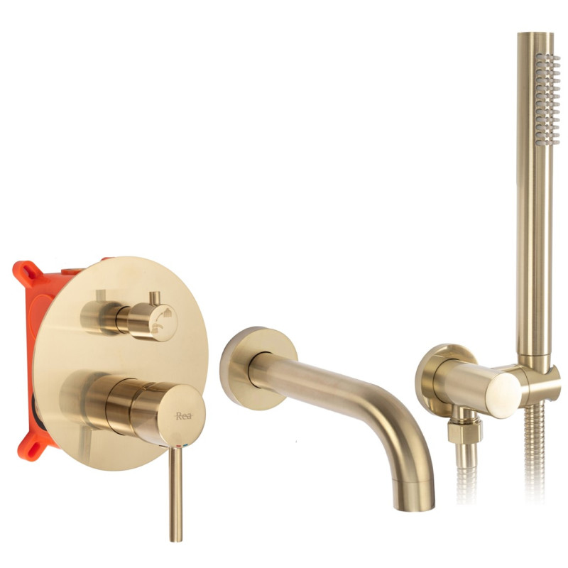 Odkryj nowy wymiar luksusu w swojej łazience dzięki Ekskluzywnej Złotej Baterii Wannowej LUNGO Podtynkowej z BOX. Ta wyjątkowa armatura stanowi perfekcyjne połączenie stylu i funkcjonalności, idealnie komponując się z innowacyjnym wystrojem każdej łazienki. Dzięki swojemu nowoczesnemu designowi, bateria LUNGO stanie się centralnym punktem Twojego pomieszczenia, przyciągając wzrok i zachwycając każdego, kto wkroczy do Twojej łazienki.
